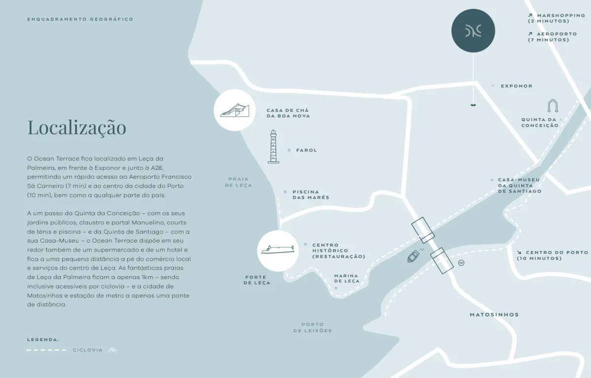 A tranquilidade e o conforto de viver junto à praia, desfrutando da gastronomia e comércio locais e do vasto património turístico e cultural, a uma curta distância das grandes superfícies comerciais, e com o Aeroporto e o Centro do Porto a menos de 10 minutos de distância.